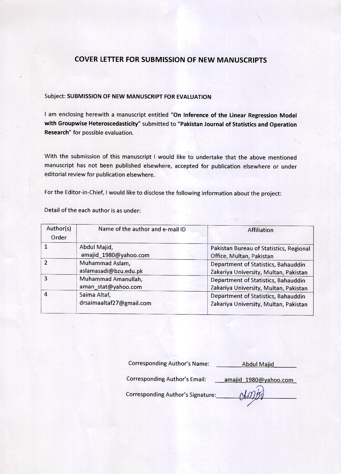 Pakistan Journal of Statistics and Operation Research Vol 3. No. 1, Jan 2007 - Peer Reviewed Articles